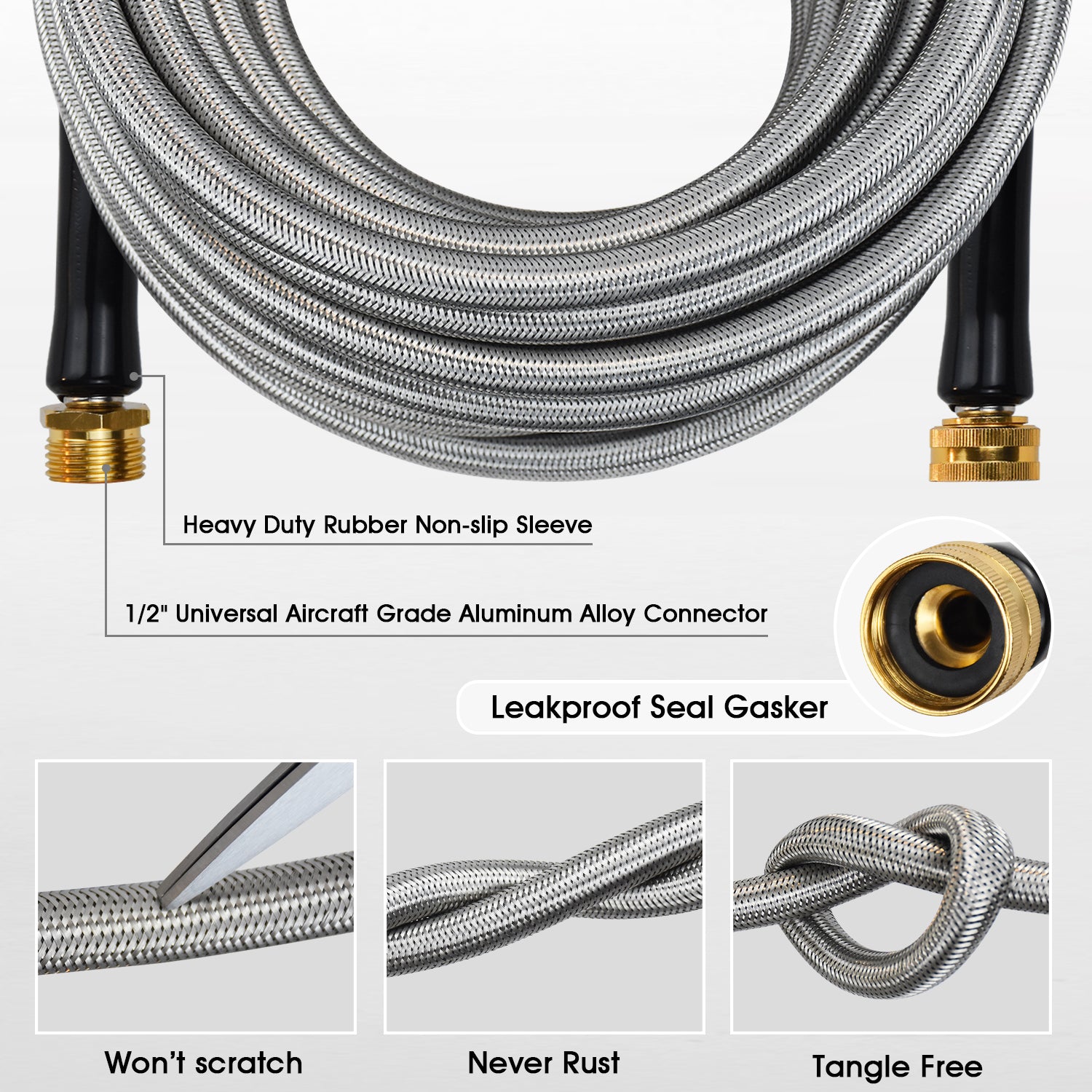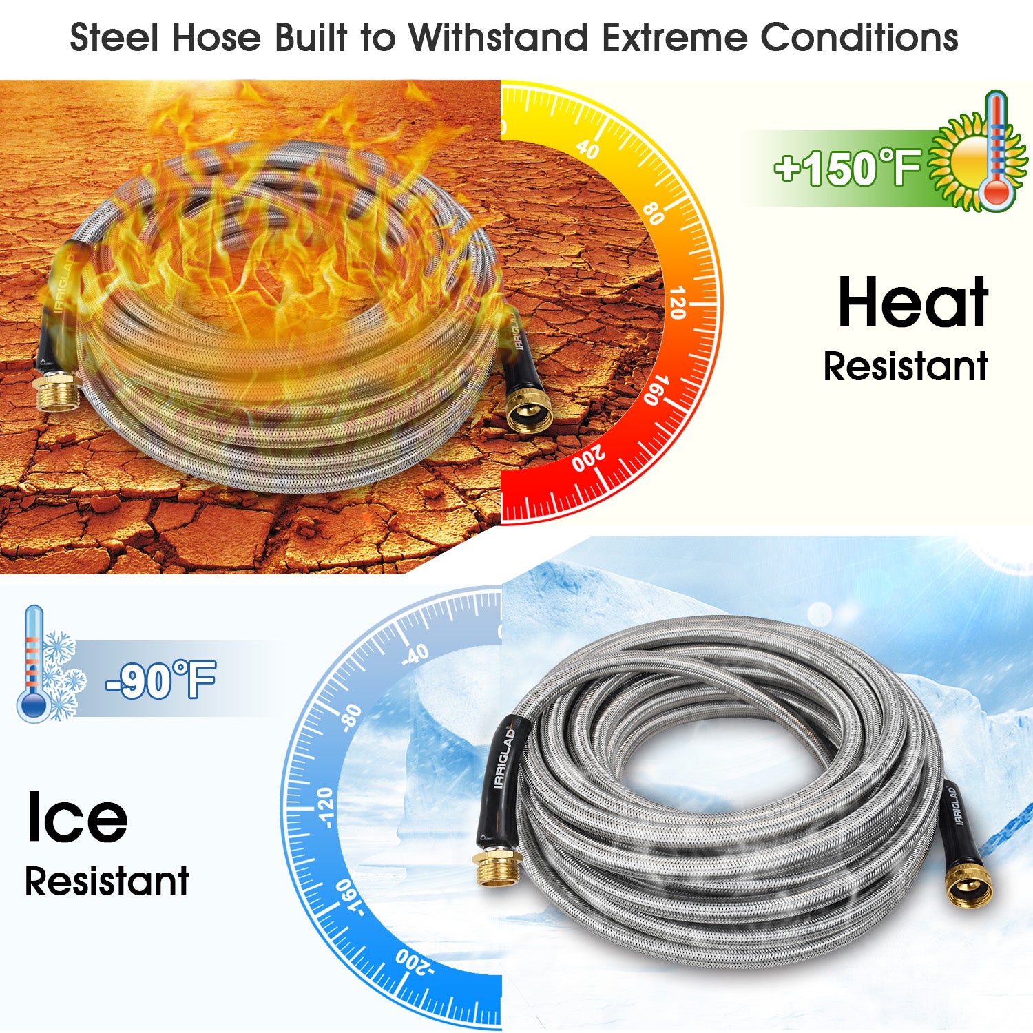 - Stainless Steelbraided Garden Hose—irriglad stainless steel water hose constructed from 304 stainless steel that is anti-rust, is resistant to leaks, punctures. it will protects epdm inner tube, ensuring quality and durability.